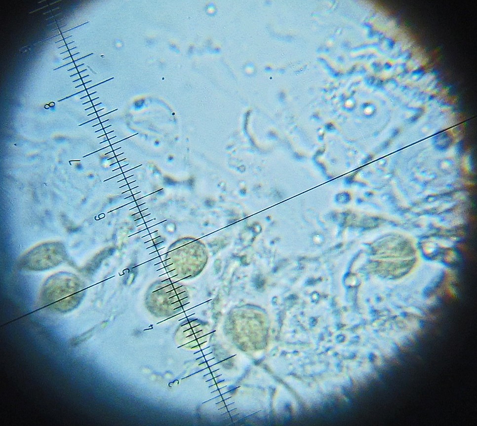 Weißlich, transparent (9-11 x 3-5 µm). |