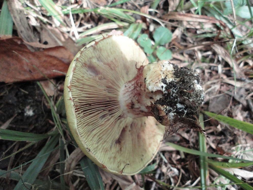 leicht unter der Huthaut rötlich bis lila blass gelb-grünlich, im Stiel oliv,