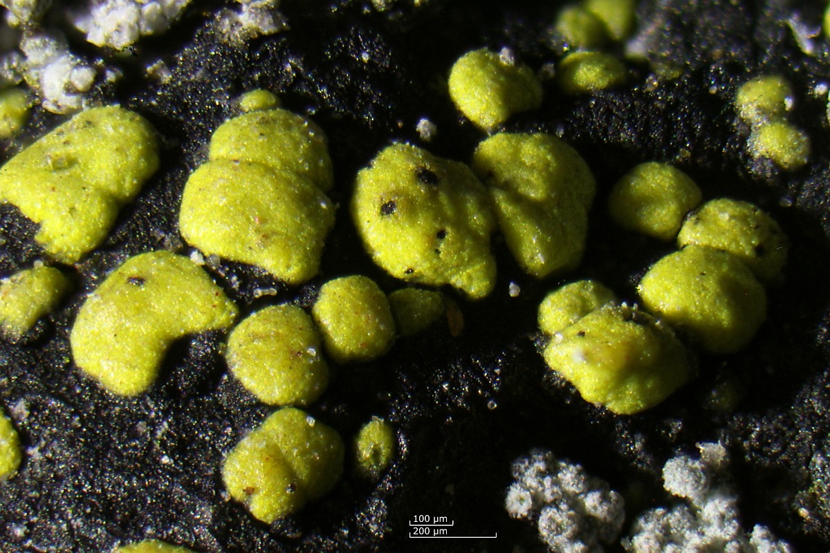 Flechten (Lichen), Krustenflechten, Schlauchpilze. |