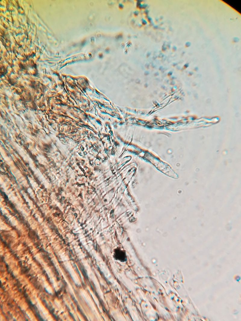 9,6-13,0 µm, viersporig, Qm = 1,3. Cheilozystiden 35 x 6,5 µm, lageniform,