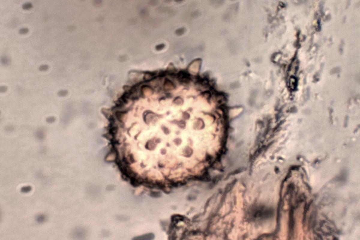 Farblos, weiß (15,5 - 18,5 µm, rund und spitz stachelig, Asci 220-310 x