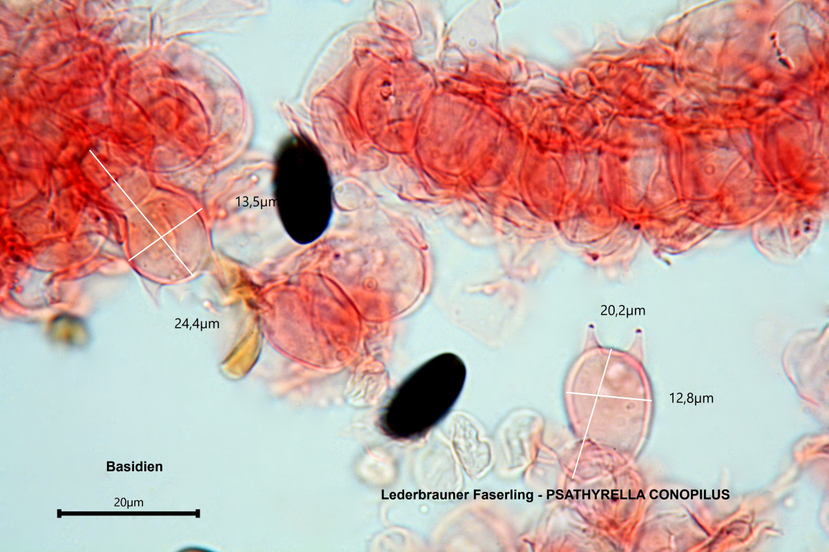 dunkelbraun in KOH, Cheilozystiden bis ca. 70 x 20 μm, mit einem