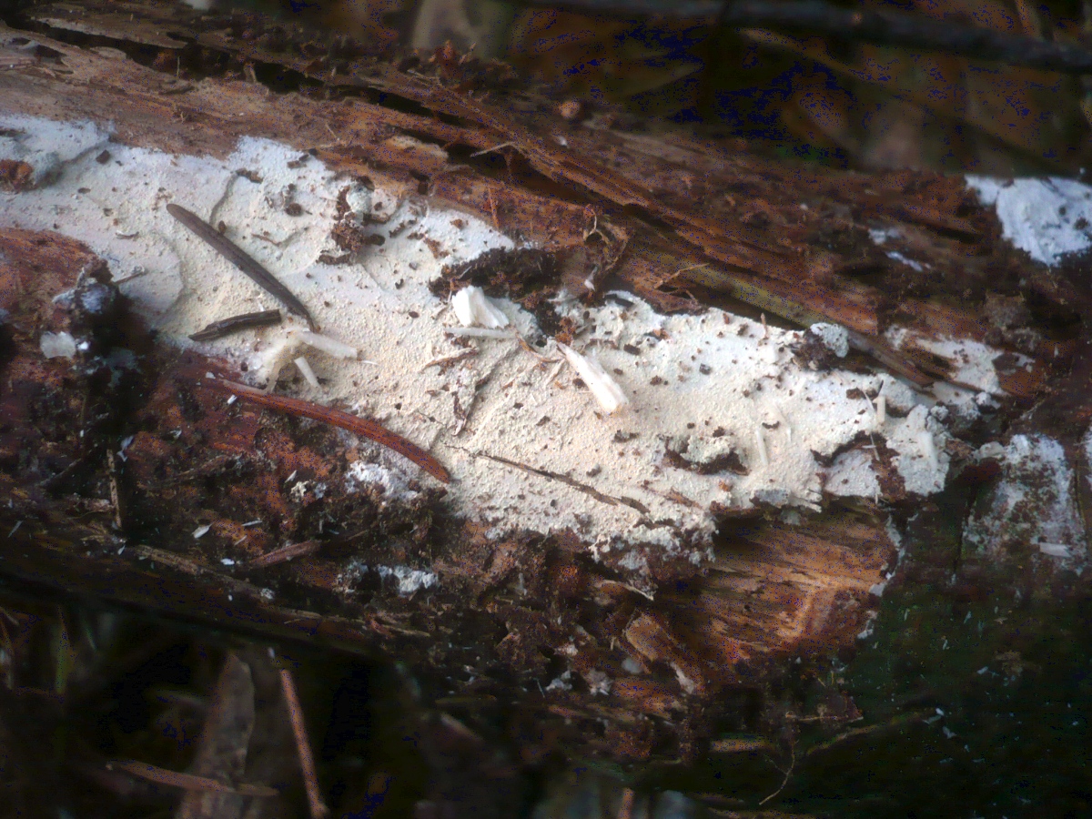 Borstenscheibling, Mehliger Stachelsporling, Zähnchenrindenpilz. |