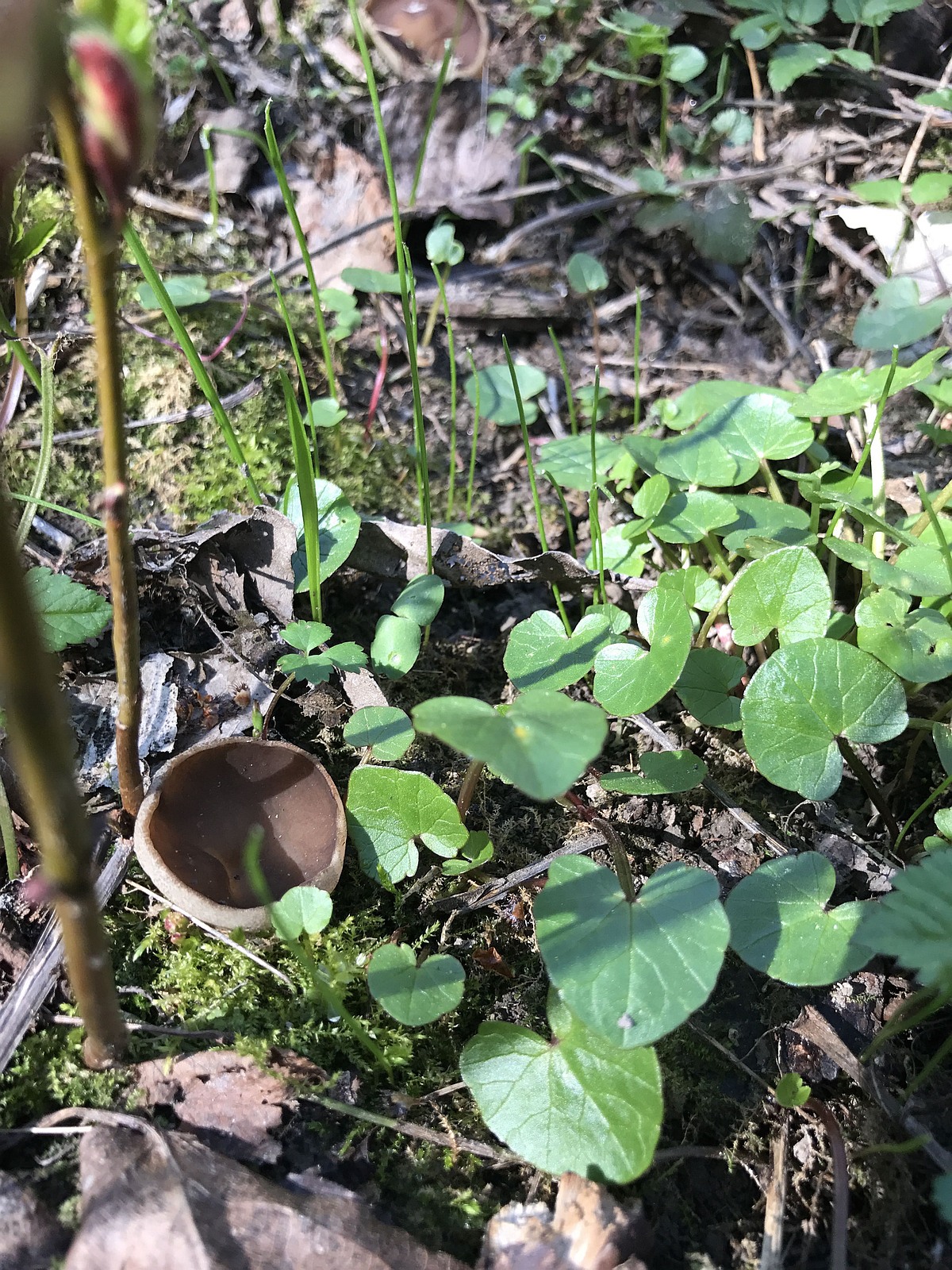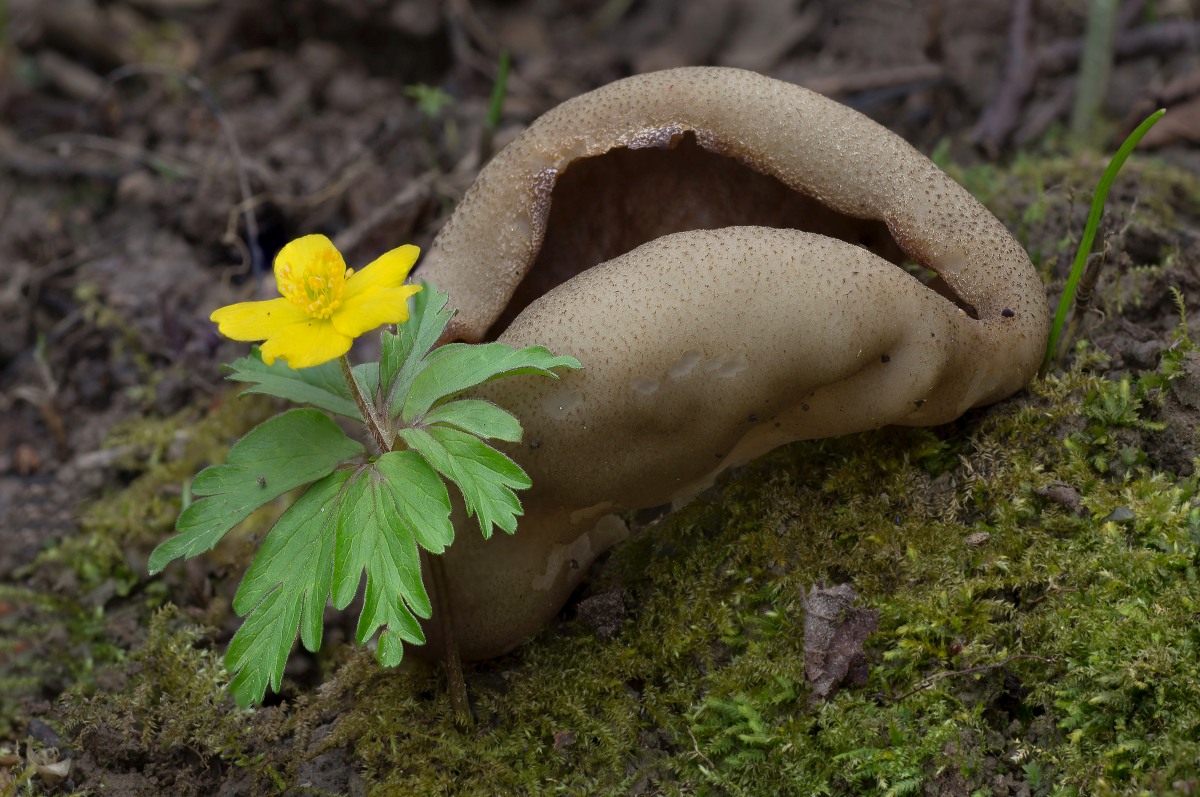 Morchelbecherlinge leben oft in gemeinsamer Gesellschaft mit den