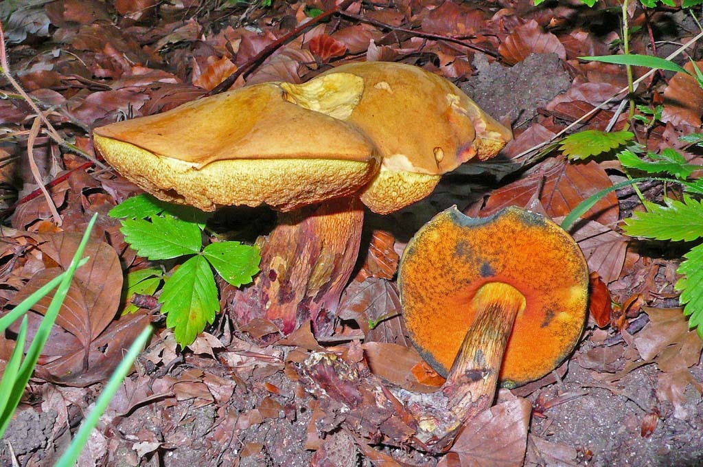 gelblichen Röhren oder dem Satansröhrling (stark giftig) mit knollig roter Stielbasis