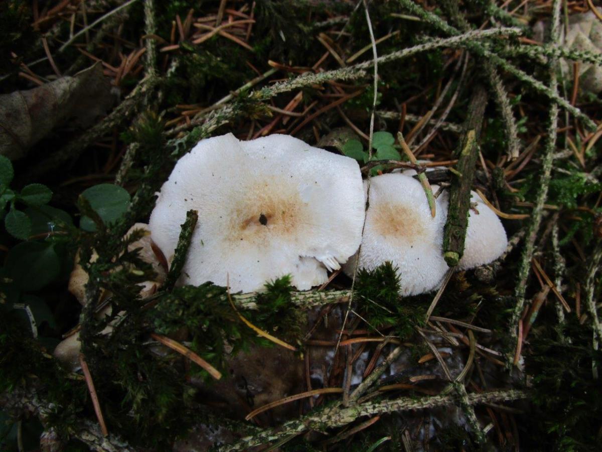 1-8 (10) cm Ø, weiß mit rosa Hauch, Mitte meist gebuckelt. Rand