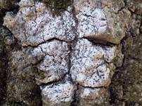 Flächig bis >10 cm Ø, Lager grau, weißgrau, ohne Solare und Isidien. 0,5-1 (1,2) mm Ø Perithecien