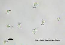 Hellgelb (6-8 x 5-7 µm). |