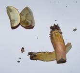 bis gelboliv, auf Druck blauend, rundlich, ausgebuchtet angewachsen. |
