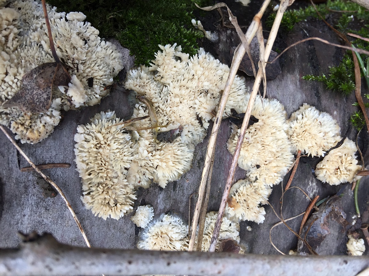 Außenseite und Grund mit Mycel zu einem dichten Filz verwebt. |