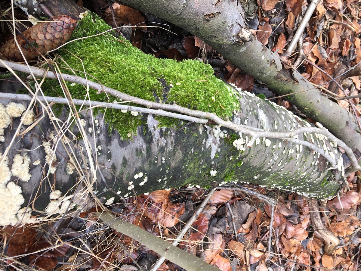 Baumrinden von Laub- und Nadelholz oder auf Pflanzenstängeln ausbreitend,