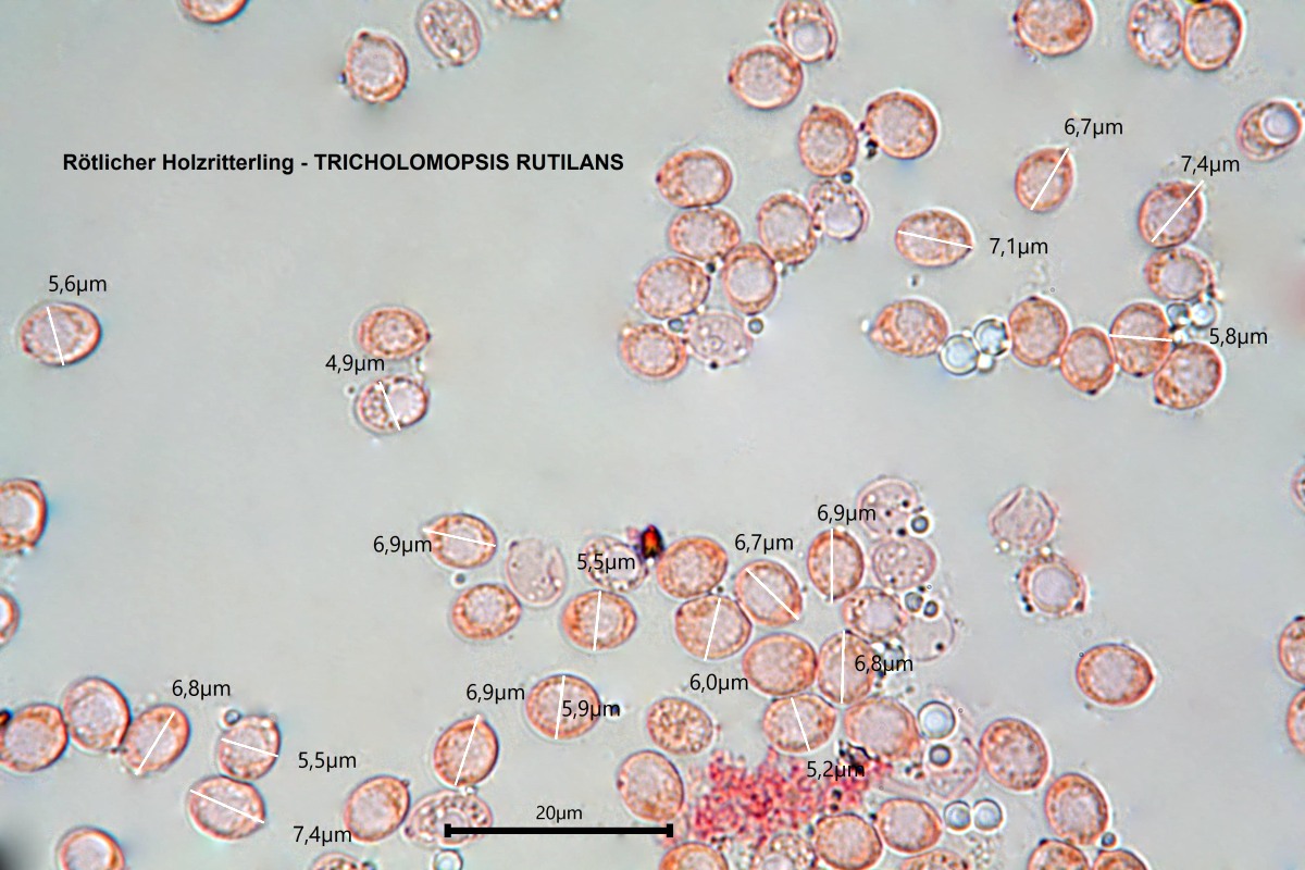 Weiß (5-7,8 x 3,5-6 µm, rundlich bis breit elliptisch). |