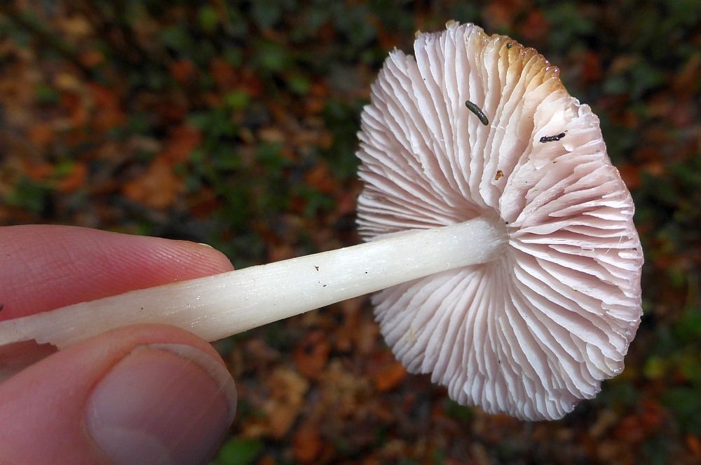 Farbformen. Im Gegensatz zum Rosa Rettichhelmling = MYCENA ROSEA, dieser ist kräftig rosa gefärbt am Hut und nur blass rosa