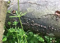 Oft mit pustelförmigen Plüschknubbelpilz besetzt. |