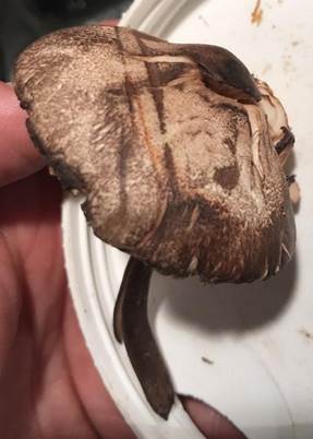 verfärbend. Spitze ist leicht vom Hutfleisch abtrennbar. |