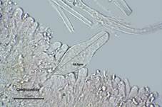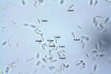Weiß (6-9,5 x 3-4,5 µm, länglich elliptisch, glatt, kein Keimporus). |