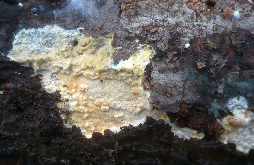 buckelig, wulstig-körnige Oberfläche. An Rinde anhaftende Fruchtkörper. |