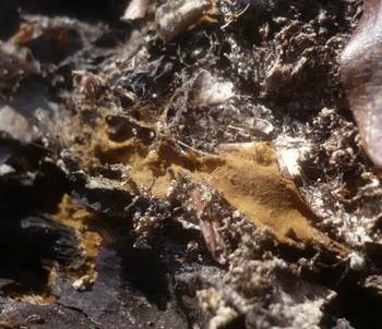 Totholz, auf morschem Laub- oder Nadelholz, Außenseite von Rinden,