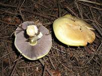 im Alter fast hohl, bei Berührung gelblich werdend. Basis oft mit weißlichem