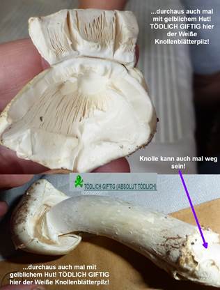 Arten wie der Weiße Knollenblätterpilz (Beispiel unten)!