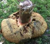 Hexenröhrling mit roten Röhrenmündungen, Wurzelnder