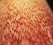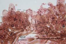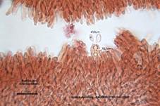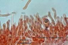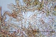 Gelblich, auf Druck blauend, ausgebuchtet angewachsen, feine Mündungen. |