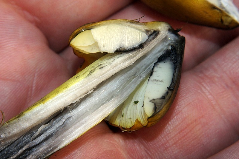 Gelb, zitronengelb, angeheftet, fast frei, alt schwärzend. |