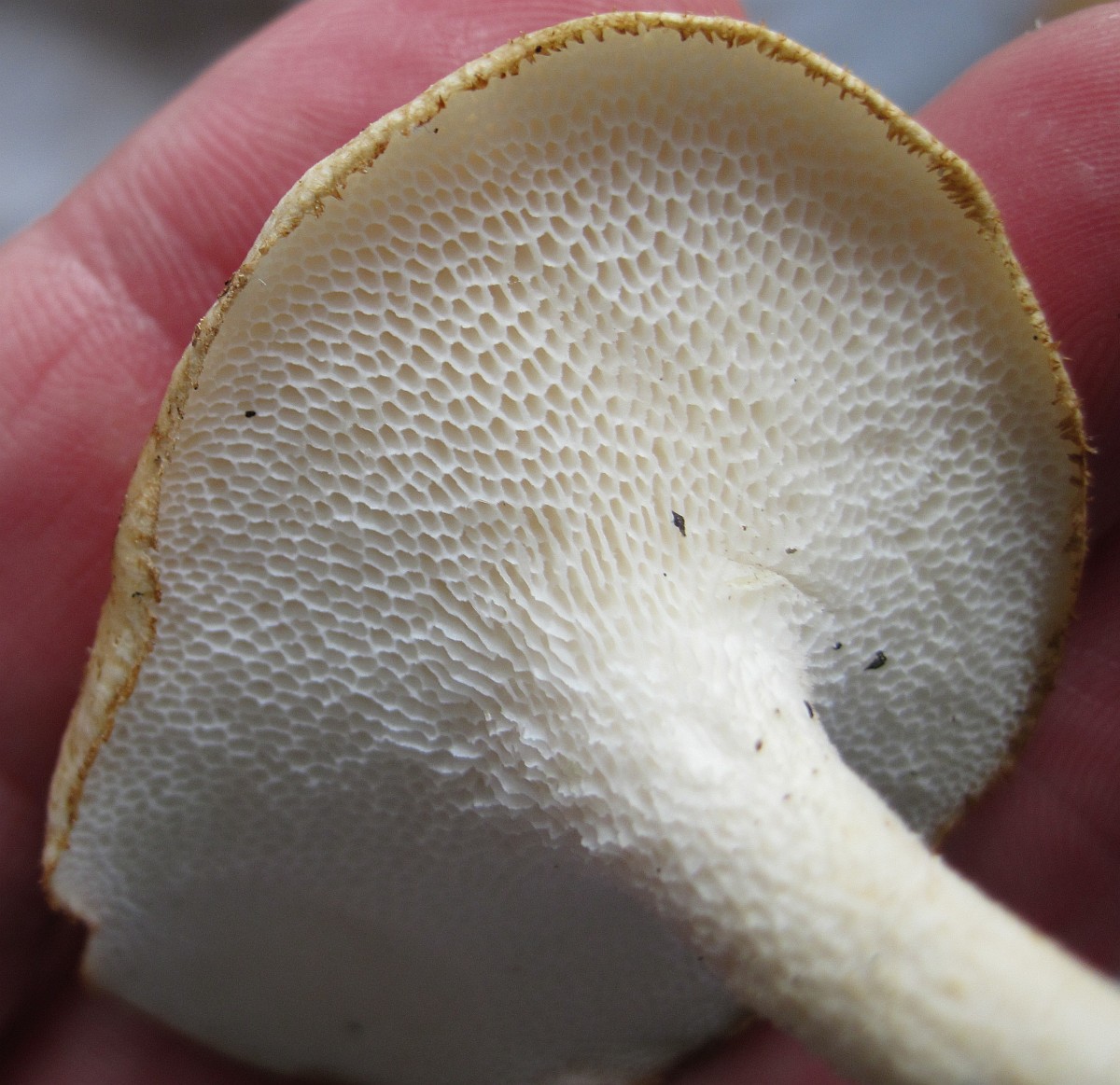 Basis oft filzig, nicht schwarz wie beim Schuppigen Porling. |