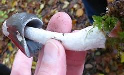 10-15 (25) cm lang, 1-3 (4) cm Ø dick, weißlich,