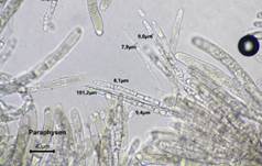 hyalin. Asci 220-300 x 18-20 µm, zylindrisch. Hyphen vom Stiel 5,5-10 µm,