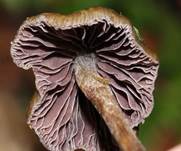 lehmbraun, später dunkler purpurschwarz, mit weißer, flaumiger Schneide. |