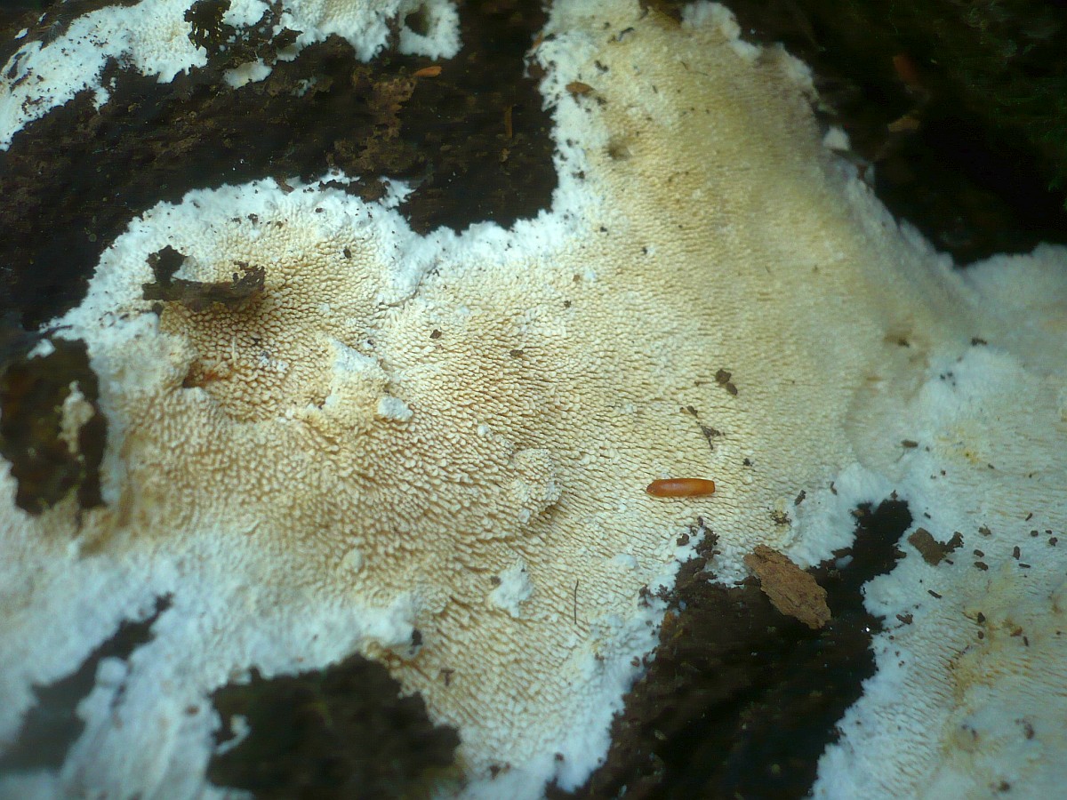 Zystidenrindenpilz, Kreisförmiger Reibeisenrindenpilz, Grünweißes