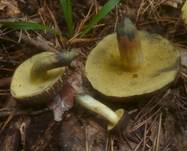 auf gelben Untergrund. Beim Falschen Rotfußröhrling