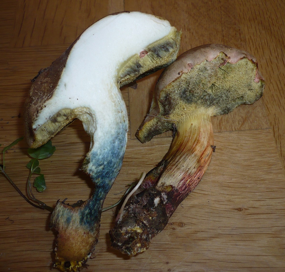 Besonders starke Gelbfärbung des Fleisches hätte der Herbstrotfußröhrling. |