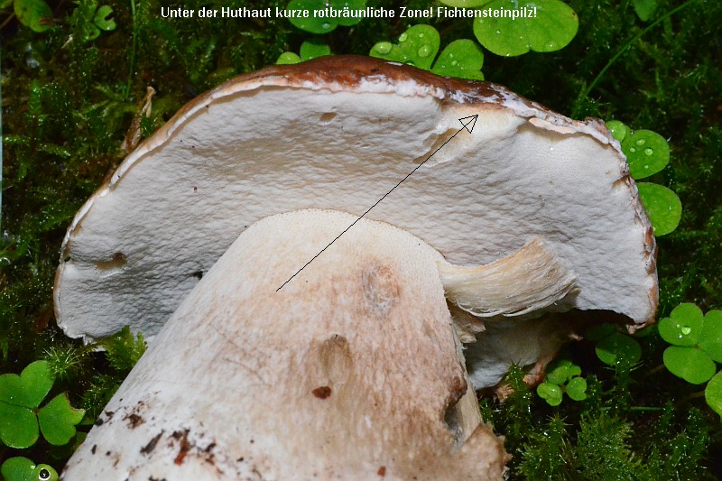 ist der weiße Hutrand und die rötlich-braune Farbzone unter der Huthaut. |