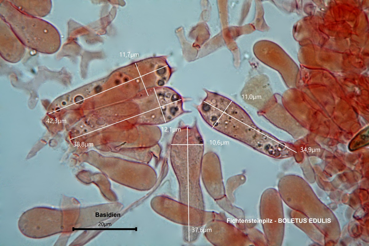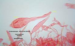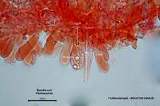 Kaulozystiden im Stielnetz, HDS-Hyphen ca. 3-6 µm breit). |