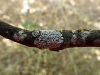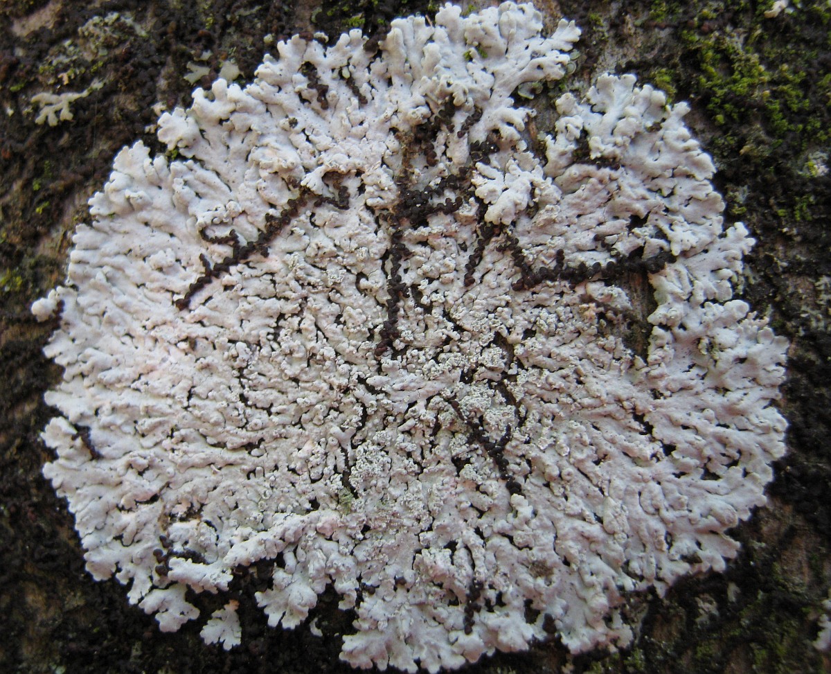 Schwielenflechte, Helm-Schwielenflechte, Lindenflechte oder andere Grauflechten, wie Sulcatflechte aber mit kantigen Rändern und