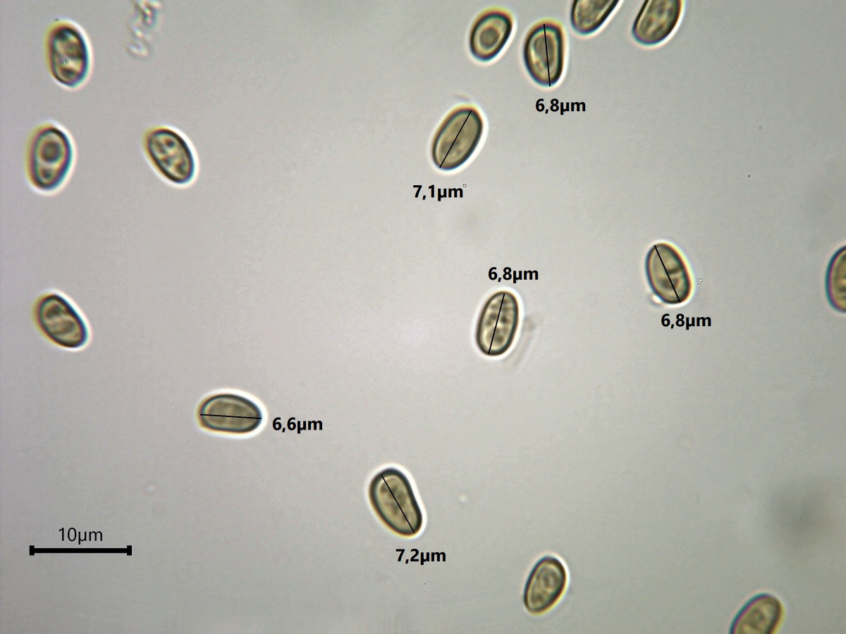Ockerbraun (6-7 x 3-4 µm). |