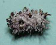 1-3 (4) cm Ø, weiß, körnig, kopfähnlich wachsend, büschelig. Aus dem