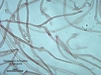 Sporenpulverresten am Stiel, Lavendelfarbener