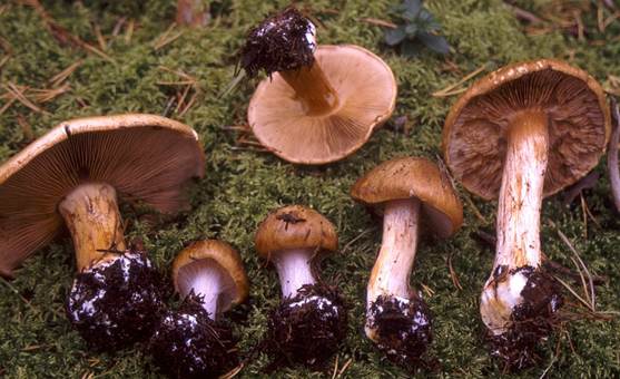 Schleierlingsarten mit leuchtend gelber Fleischfarbe können hochgiftig
