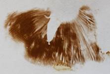 milchkaffeebraun, gelbbraun, Mitte dunkler, Rand lange eingerollt und oft mit