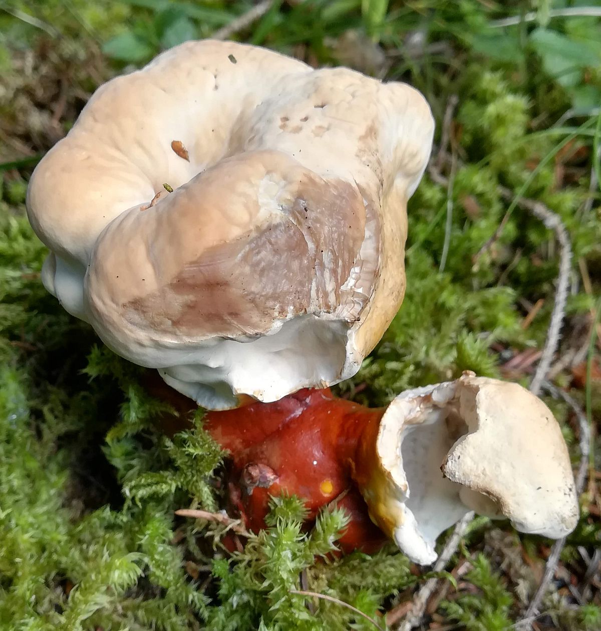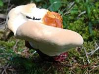 Weißlich, braun, bei Verletzung bräunend; daher der Name Malerpilz, 3-5