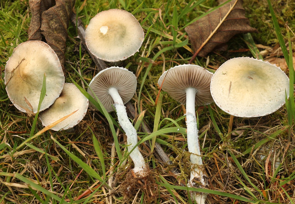 = Huthaut trocken, schuppig, Lamellen weiß, frei (tödlich giftig). |
