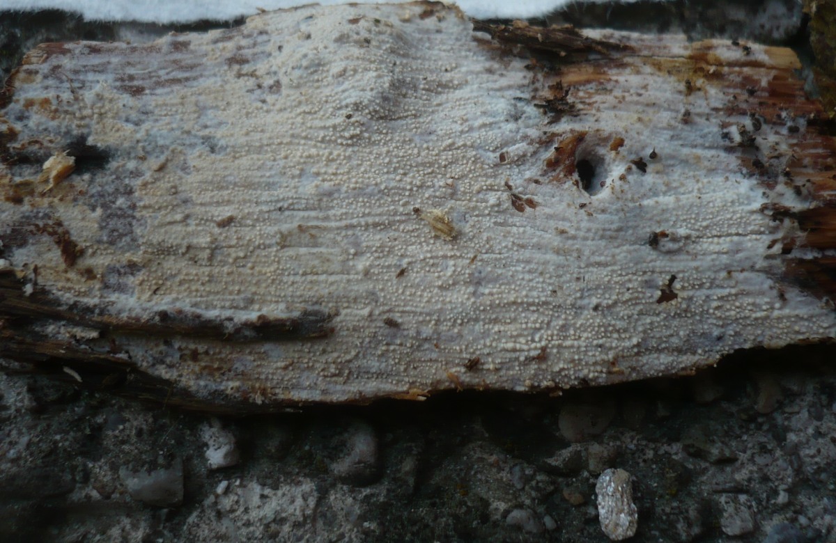 Kammpilz, Milchweißer Zystidenrindenpilz,