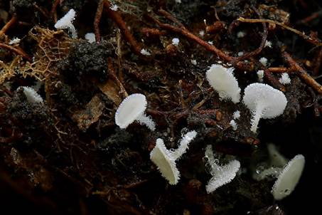 VIRGINEUS, PEZIZA VIRGINEA VAR. VIRGINEA, MARASMIUS BICOLOR,