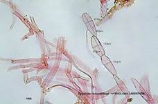 hyalin, zylindrisch oder unregelmäßig, mit subkapitalen Spitzen). |