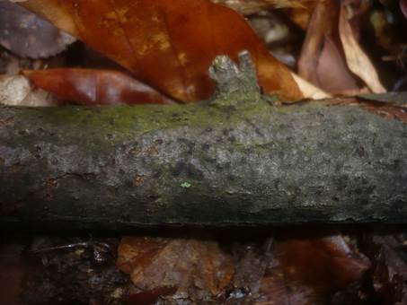 1-2 (2,5) mm Ø, schwarzbraun, in der Rinde eingesenkt und später aus der Rinde hervorbrechend, rundlich. |